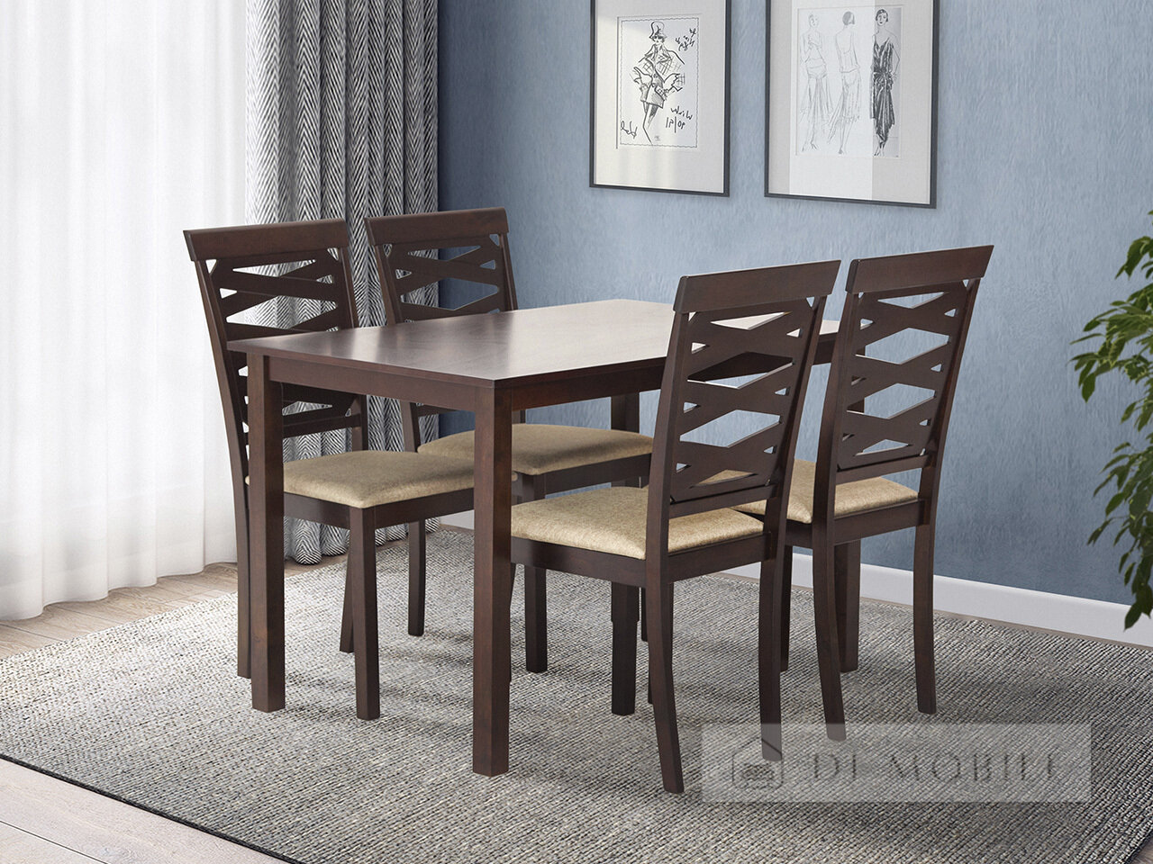 Удобный кухонный комплект для обеденной зоны в классическом стиле. Стулья с высокими спинками надежно поддерживают тело и предотвращают усталость. Высота прямоугольного стола будет удобна для всех членов семьи. Каркас и ножки изготовлены из массива дерева, столешница из экологичного и влагостойкого МДФ. Вы можете выбрать цвет каркаса и мягкой обивки на стульях по своему усмотрению. В Комплект входит 1 нераскладной стол и 4 стульчика. Продажа только комплектами.Габаритные размеры стола: