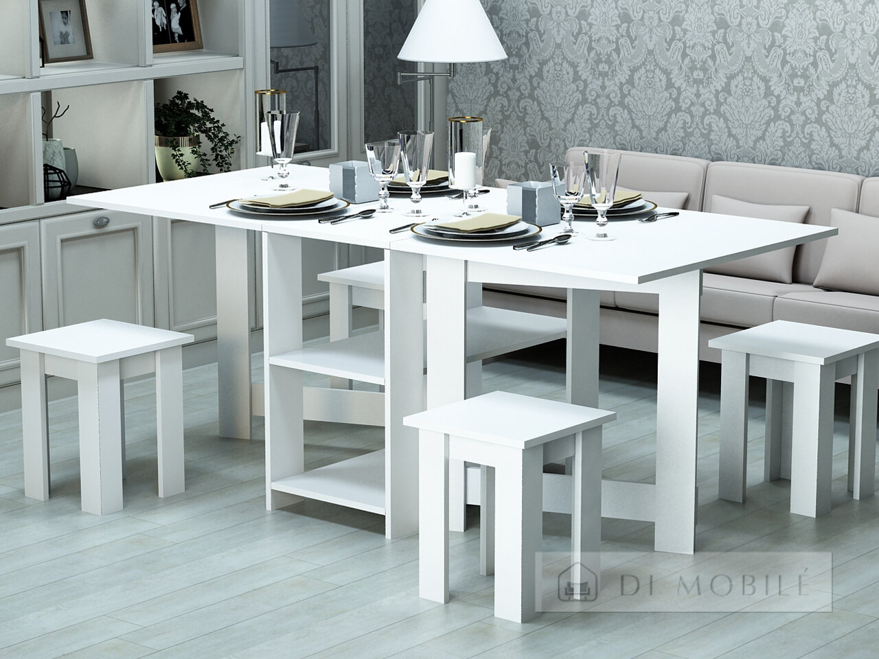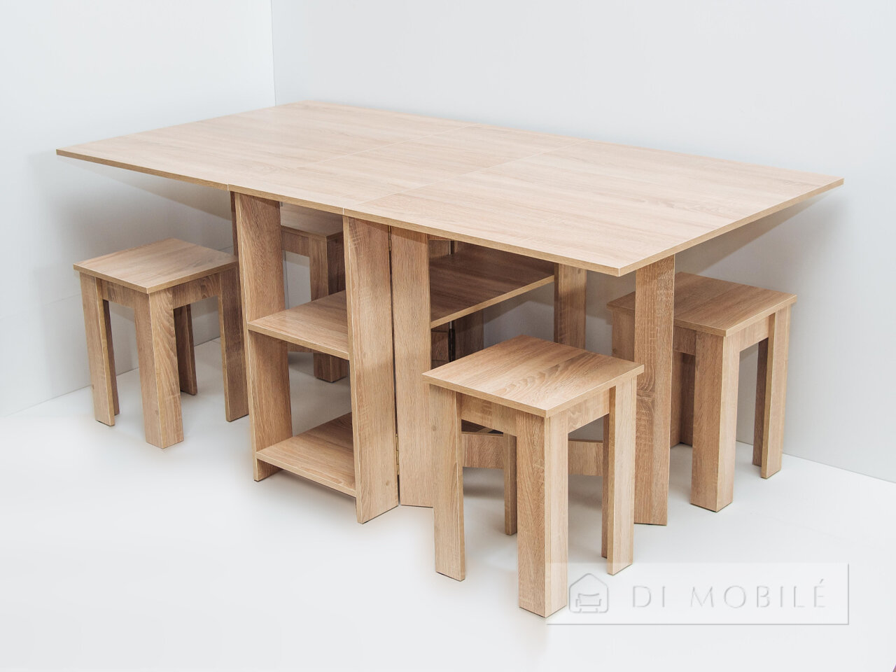Если вы живете в небольшой квартире, но хотите ощущать всю полноту семейных обедов за широким столом, предложение от мебельной фабрики «Гамма Стиль» - именно то, что вы искали. Качественно выполненный стол с большим разнообразием цветовых решений не только отлично впишется в любой интерьер гостиной или кухни, но и позволит собраться большой компанией. При необходимости же стол складывается до небольших размеров, а стулья прячутся под ним, освобождая пространство.