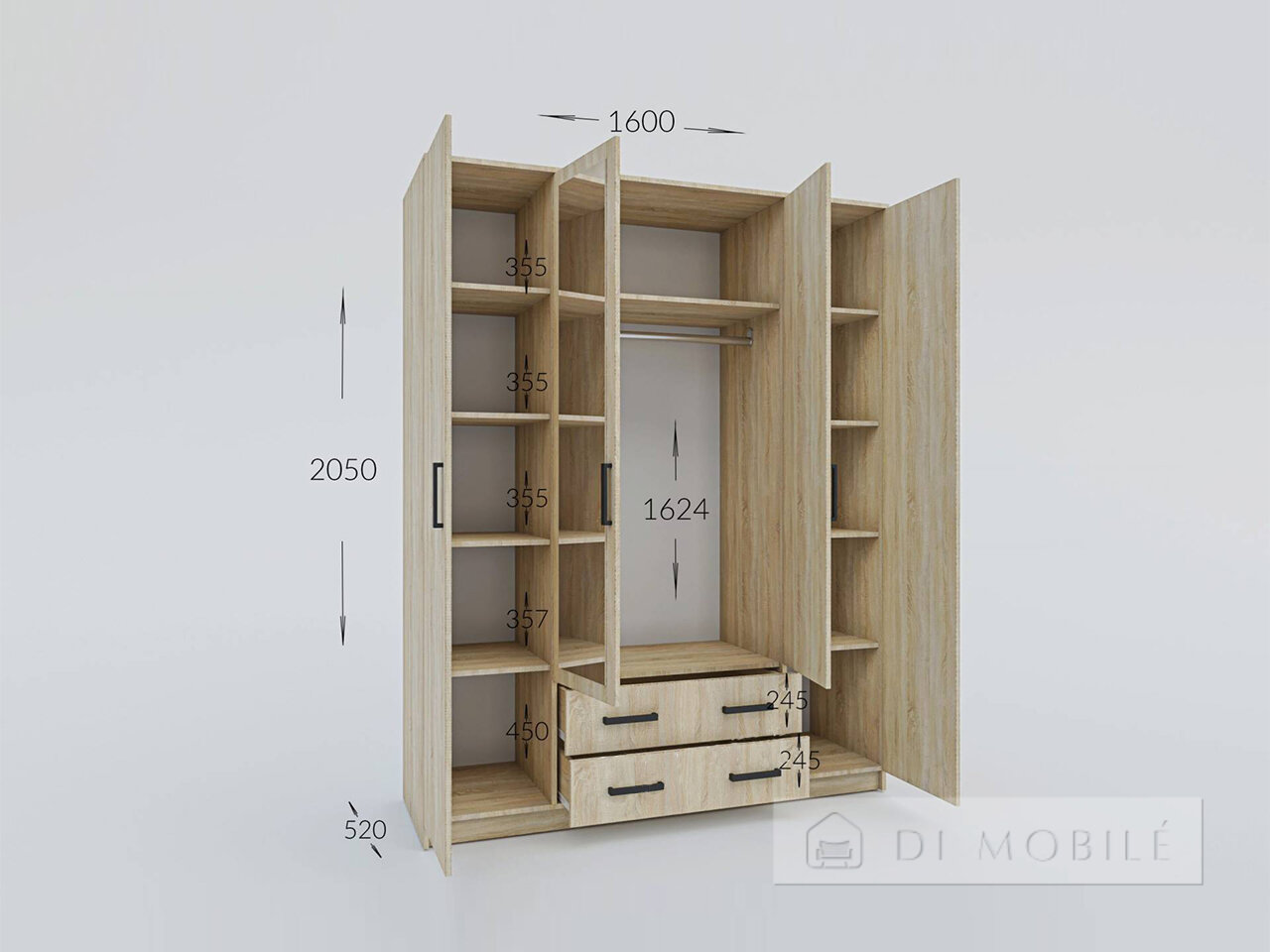 | Габаритные | 1600 | 2050 | 520 |
