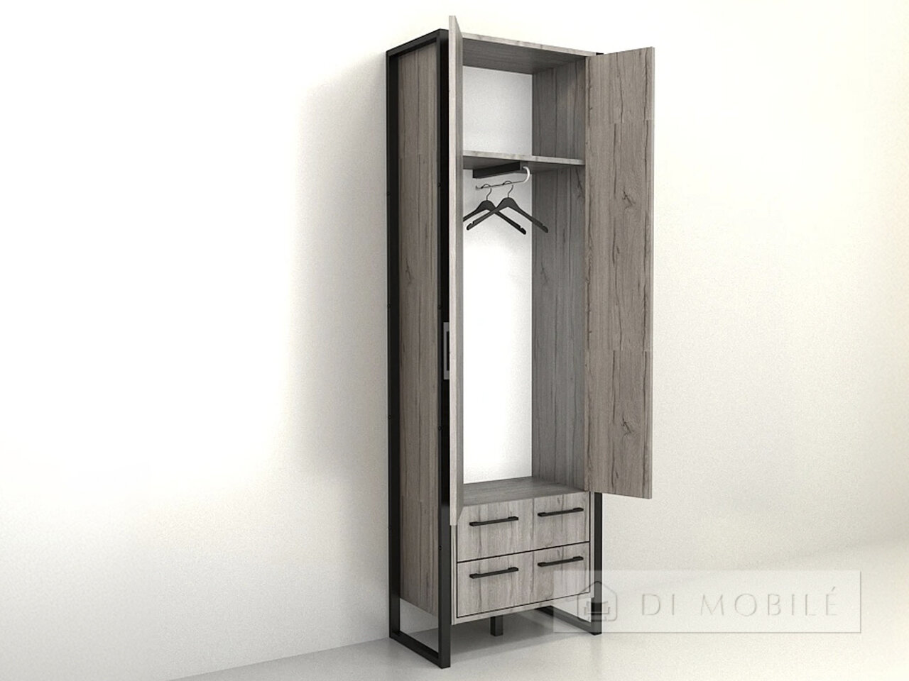Шкаф имеет четыре ящика, которые позволяют хранить обувь и разнообразные вещи рядом и благоустроенно.