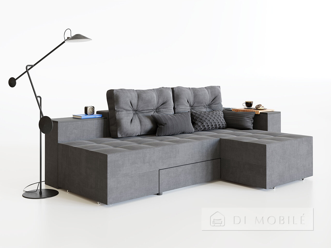 Задняя стенка дивана изготовлена полностью из ткани