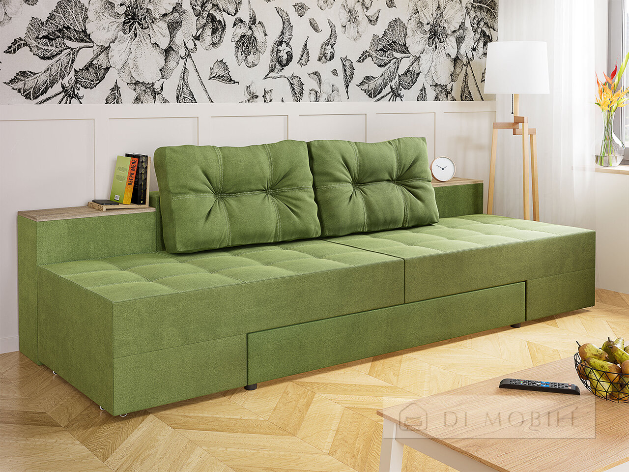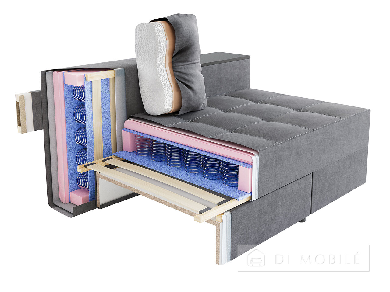 Задняя стенка дивана изготовлена полностью из ткани