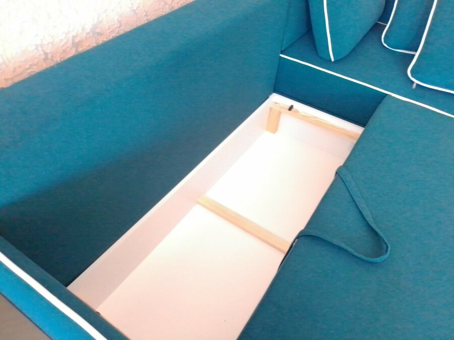 Задняя стенка дивана изготовлена полностью из ткани