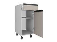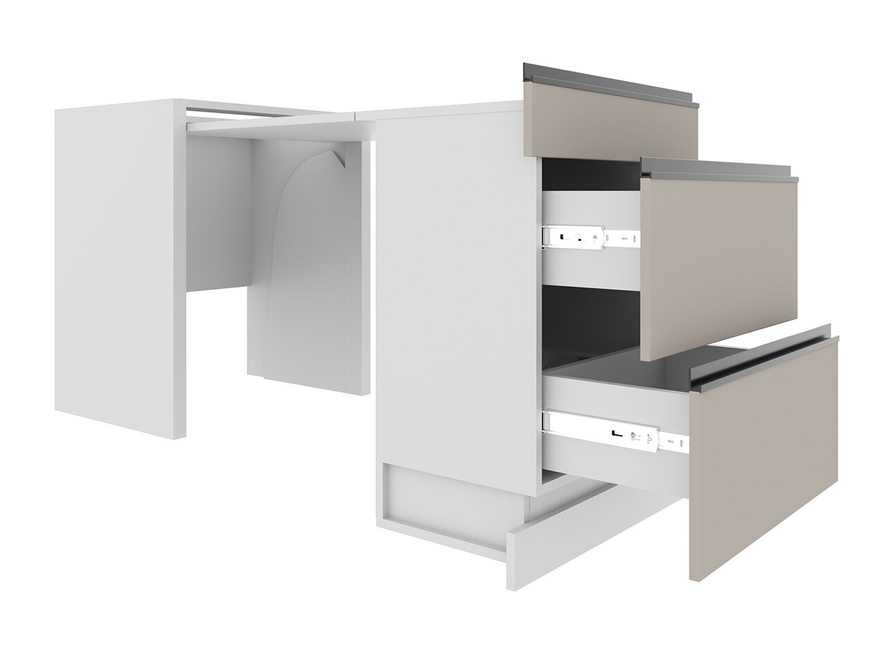 Просим обратить внимание: модуль с выдвижным столом предназначен для установки только между двумя тумбами.