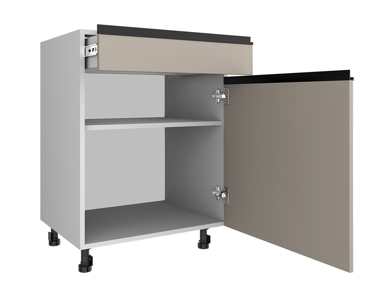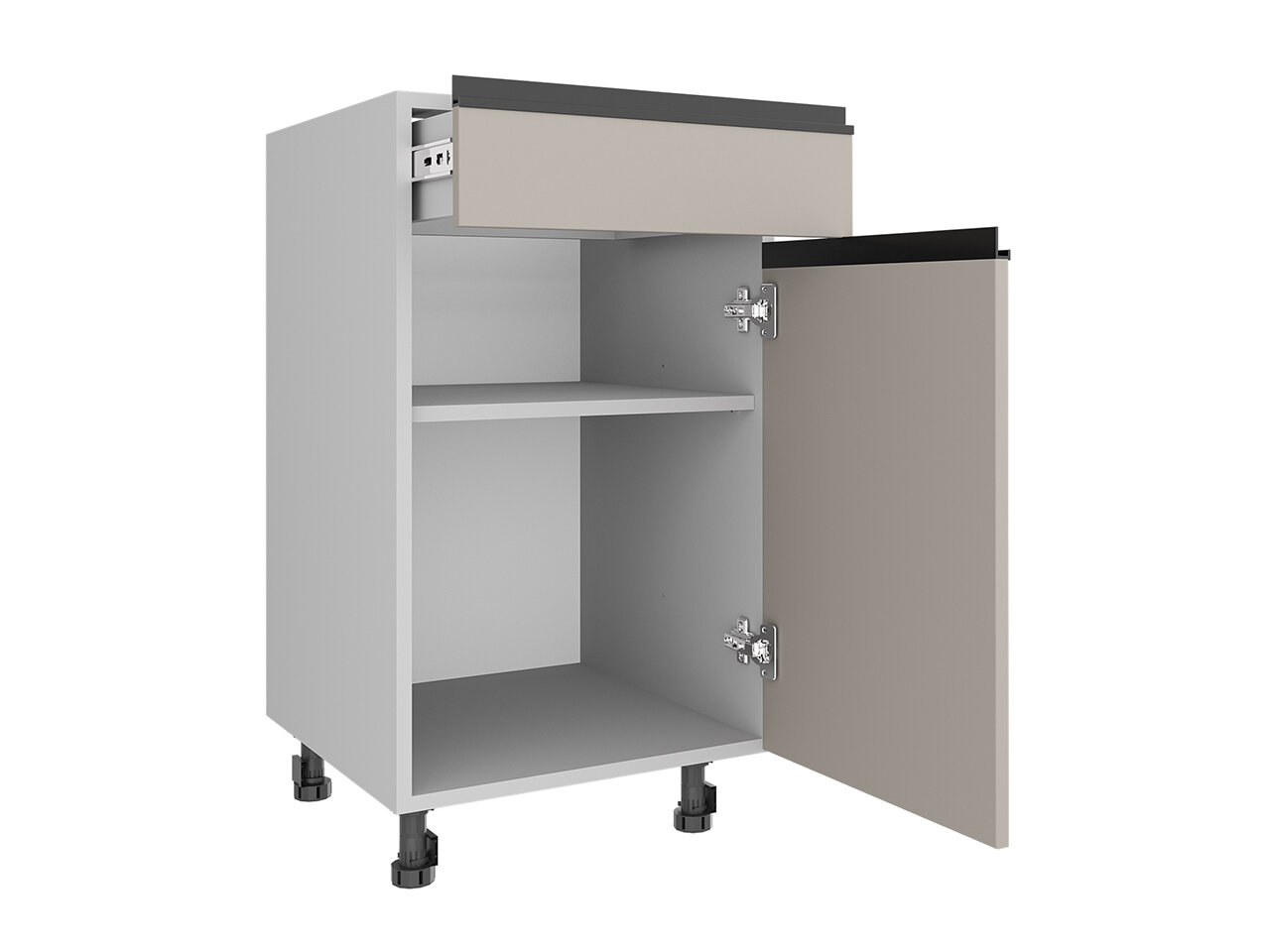 | Фасады верхних секций выступают за пределы корпуса для удобного открывания |