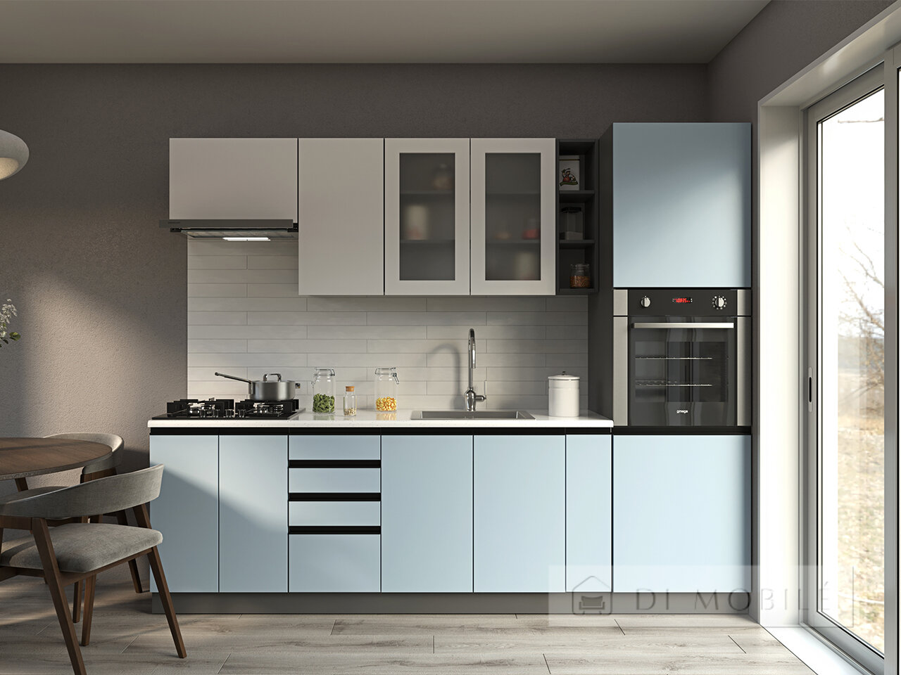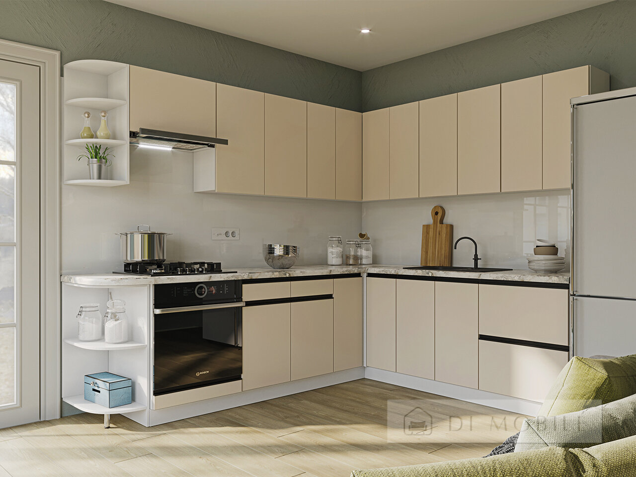 | Фасады с витриной: ЛДСП 16 мм и стекло cатин |
