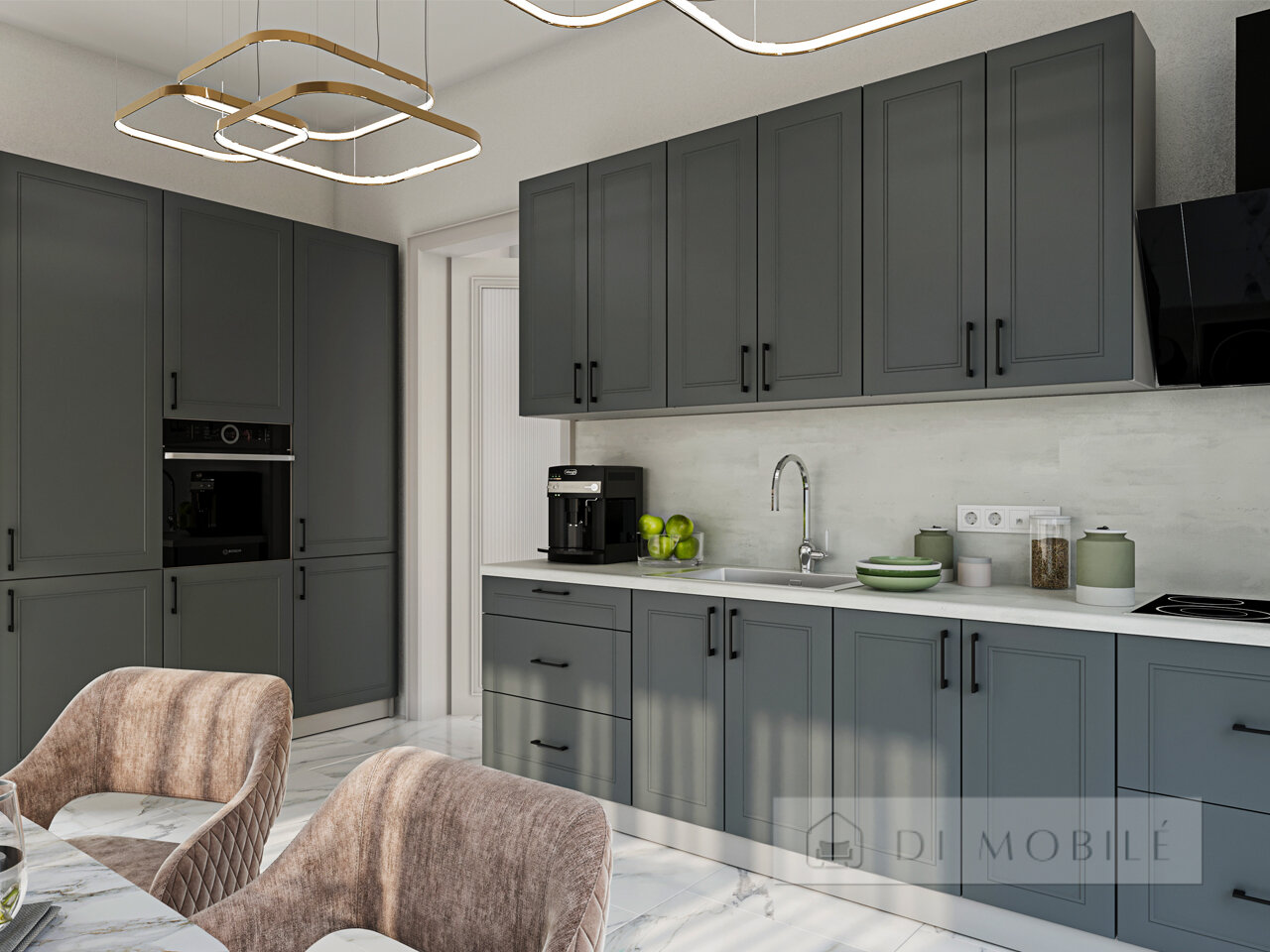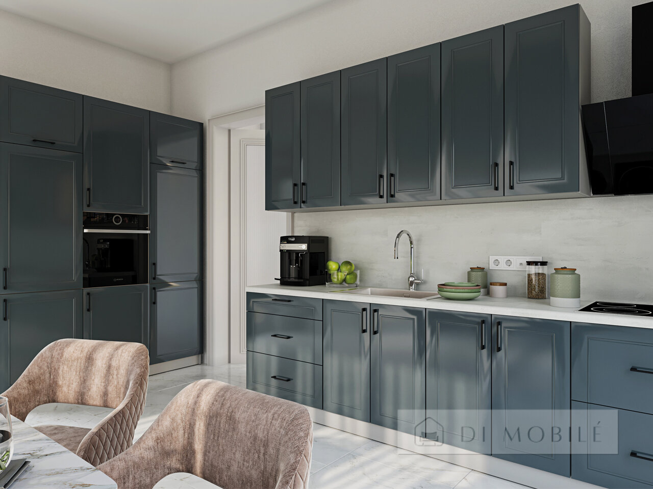 | Фасады с витриной: черная металлическая рамка + графитовое стекло |