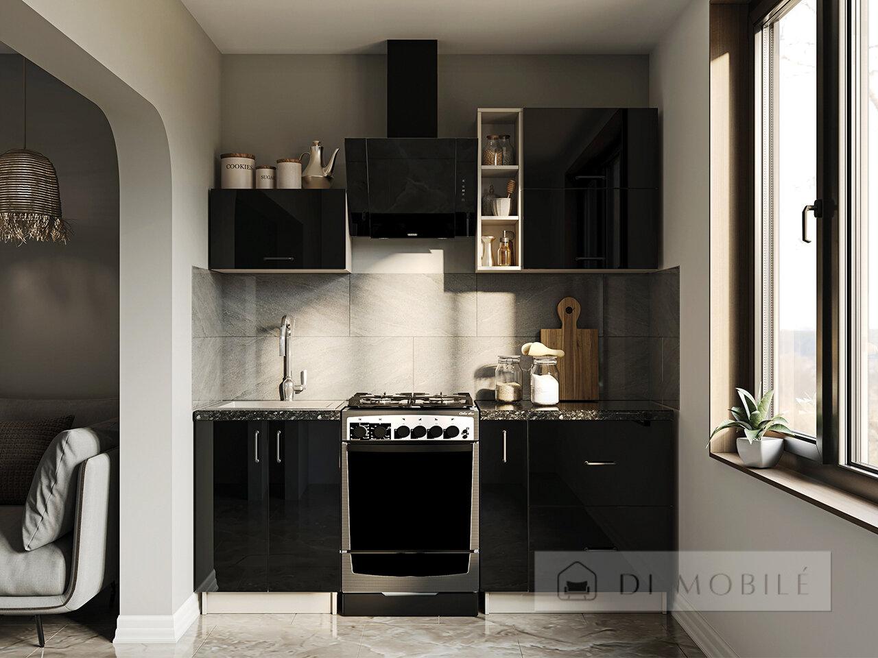 | Фасады с витриной: металлическая черная рамка + графитовое стекло |
