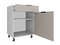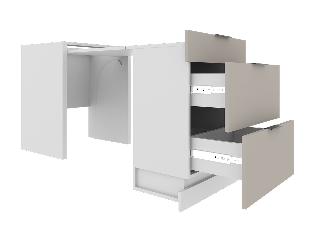 Просим обратить внимание: модуль с выдвижным столом предназначен для установки только между двумя тумбами.