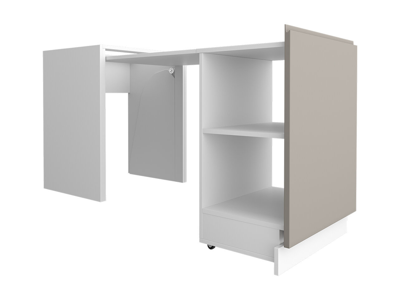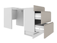 Просим обратить внимание: модуль с выдвижным столом предназначен для установки только между двумя тумбами.