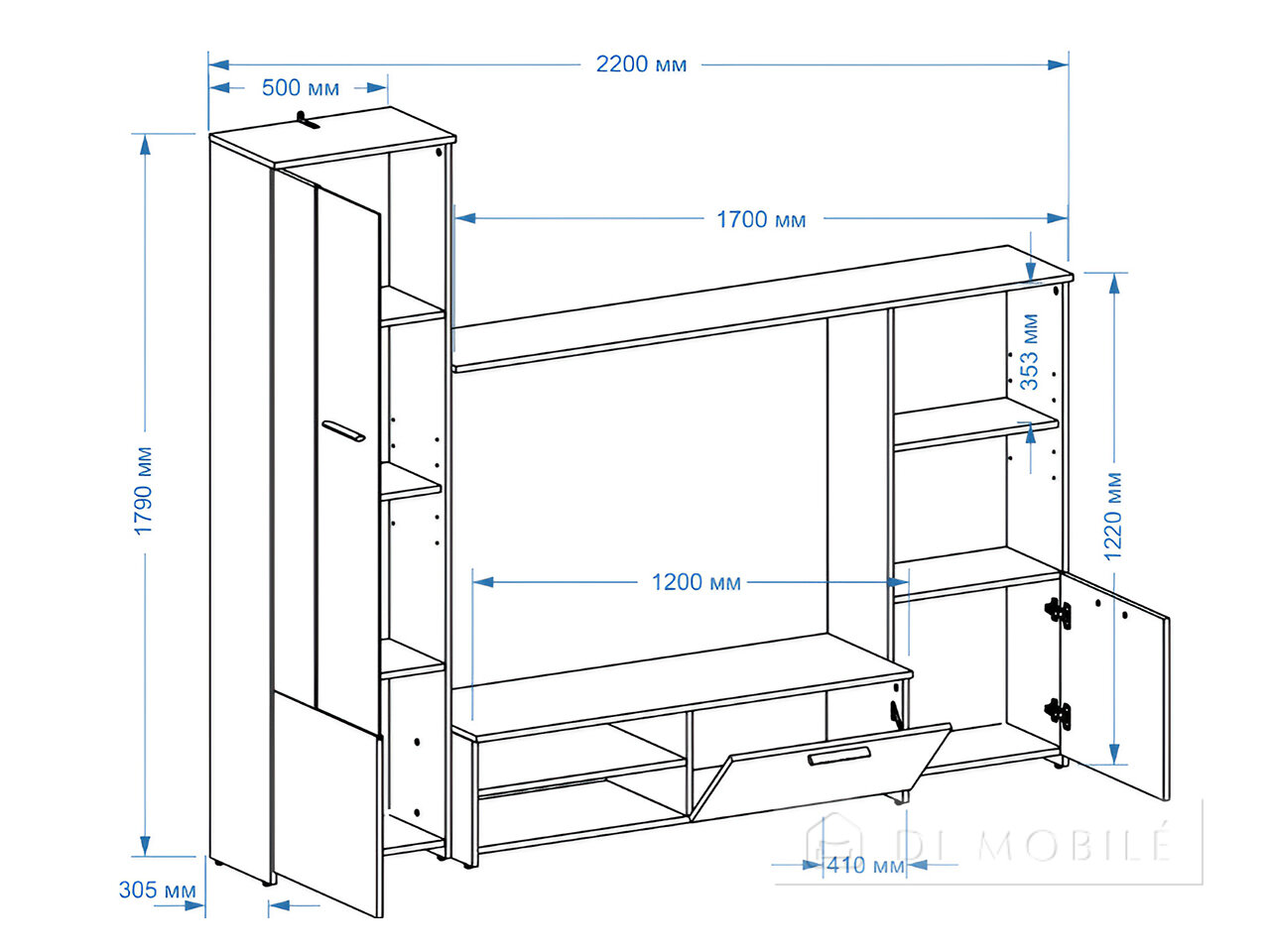 | Габаритные | 2200 | 1790 | 410 |