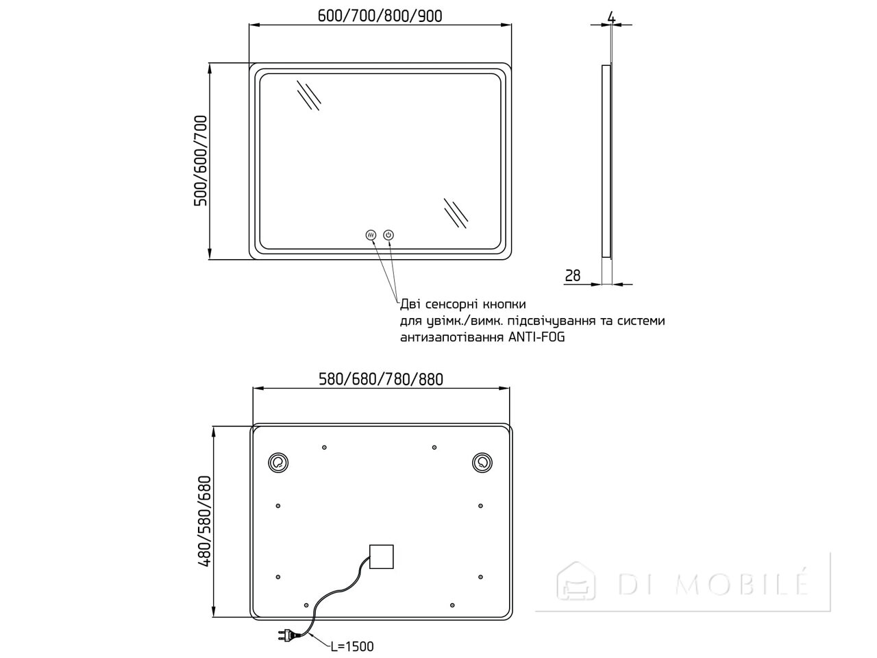 | Габаритные | 600/700/800/900 | 500/600/700 | 28 |