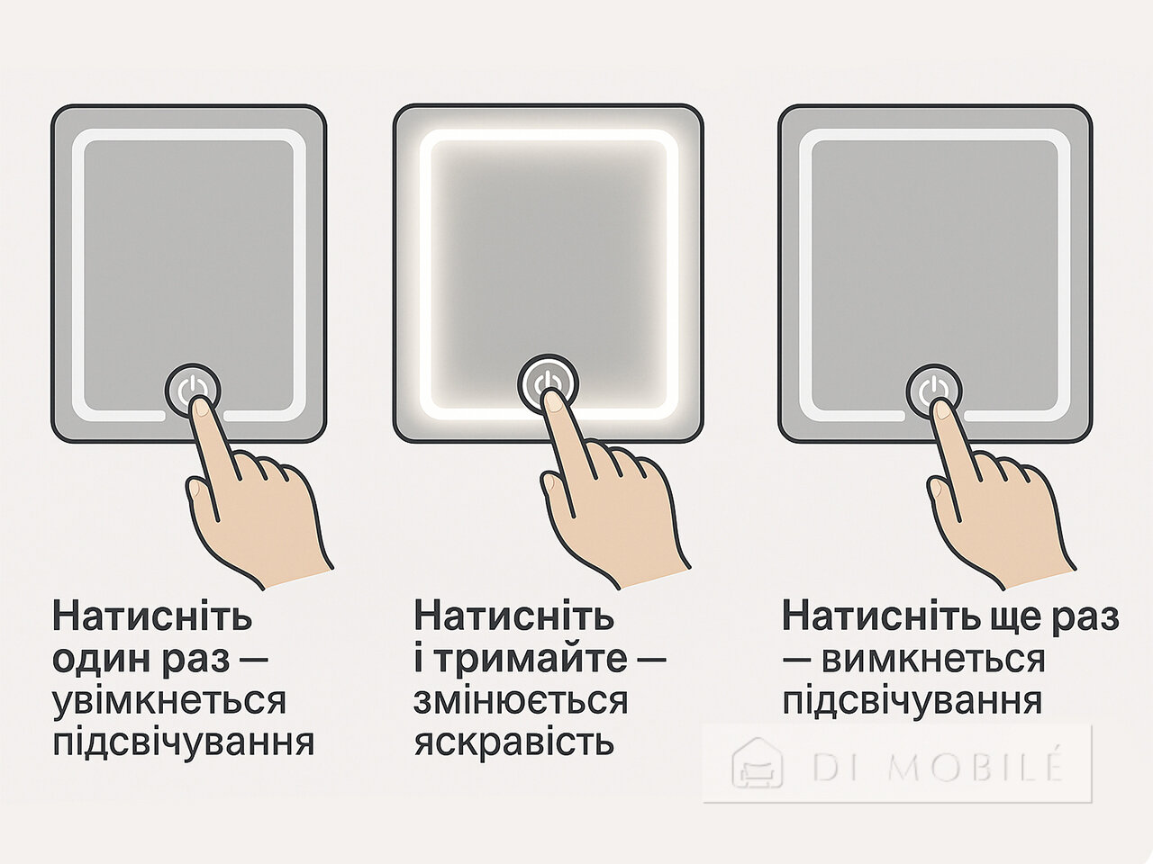 | Присутствует сенсорная кнопка для включения/регулировки яркости подсветки/выключения подсветки |