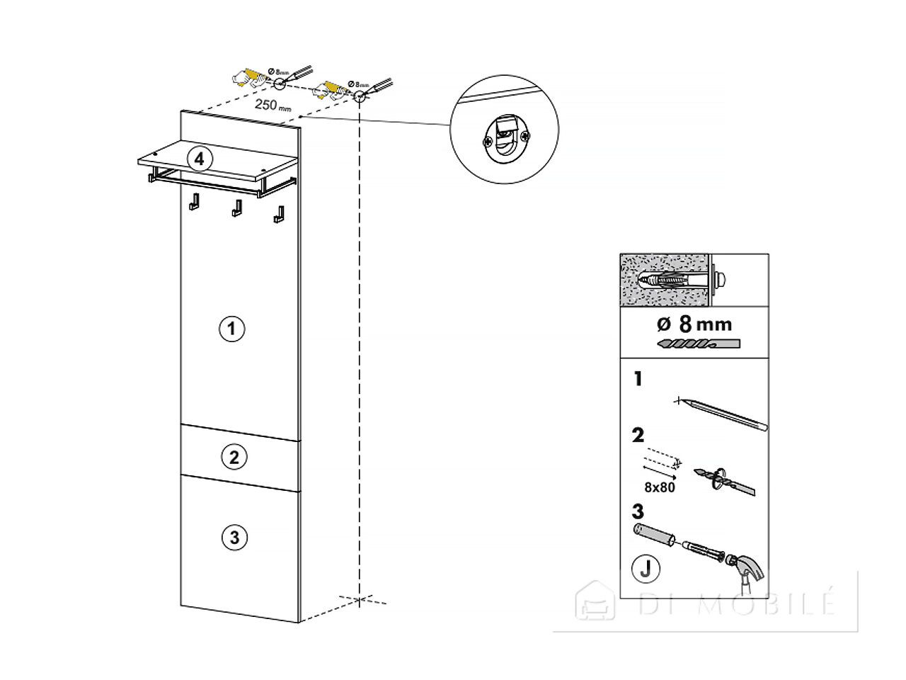 | Для монтажа вешалки на стену в комплект фурнитуры входит центральный врезной навес |