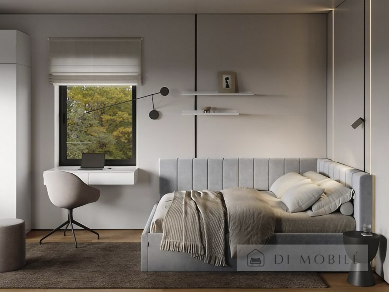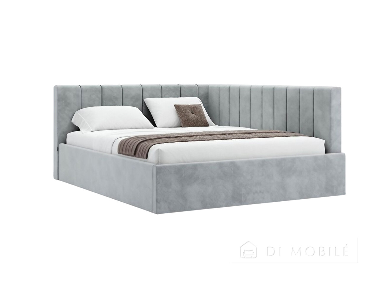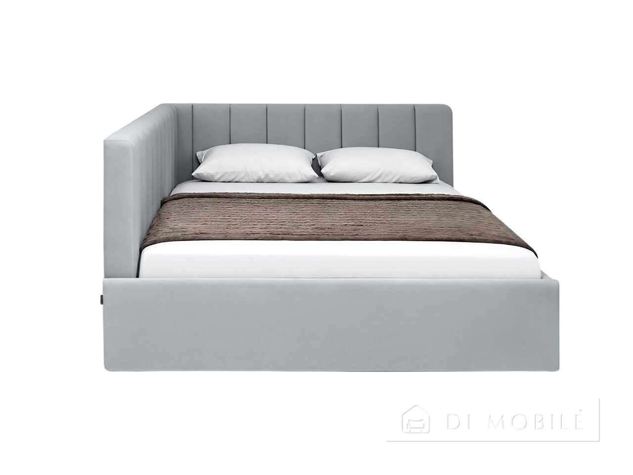| Изголовье плавно переходит в боковую панель, обрамляющую матрас |