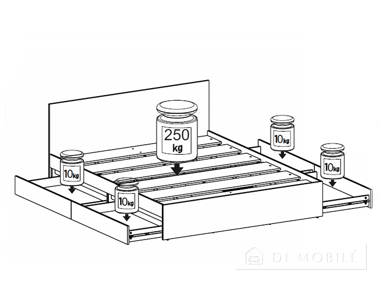 | В кровати присутствуют ящики на телескопических направляющих |