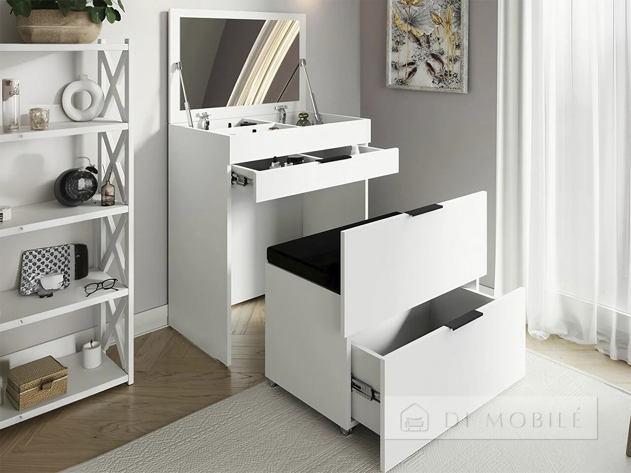 | Sub capac cu o oglindă este o nișă confortabilă, împărțit în 4 secțiuni. |