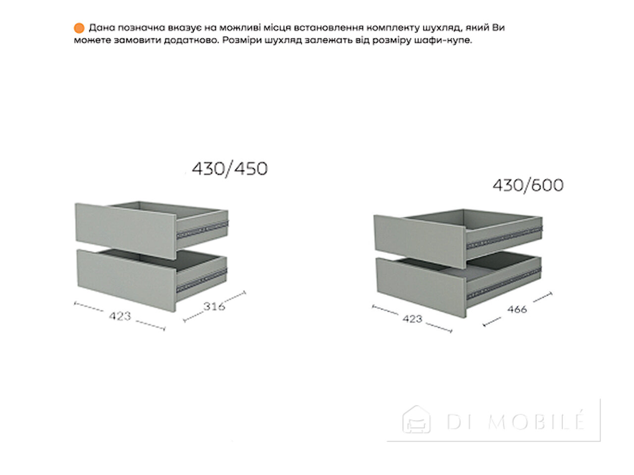 | Cutii suplimentare: ghiduri - extensie telescopică completă; dimensiune - S/V/G 450/150/450(600) mm sau 450/330/450(600) mm |