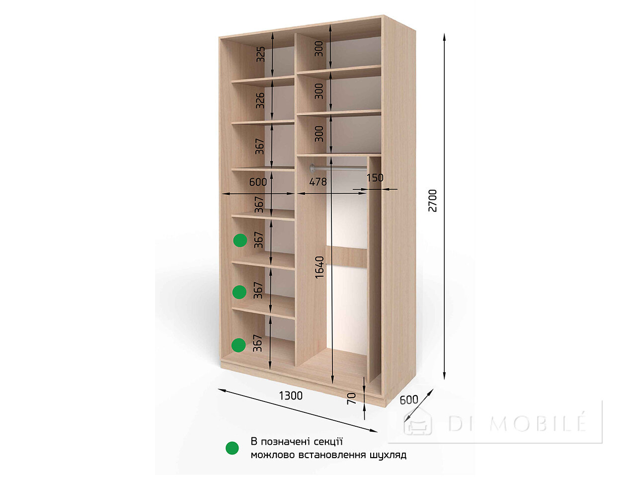 În dulapurile unde puteți cumpăra rafturi suplimentare, accesoriile nu sunt incluse în kit.
