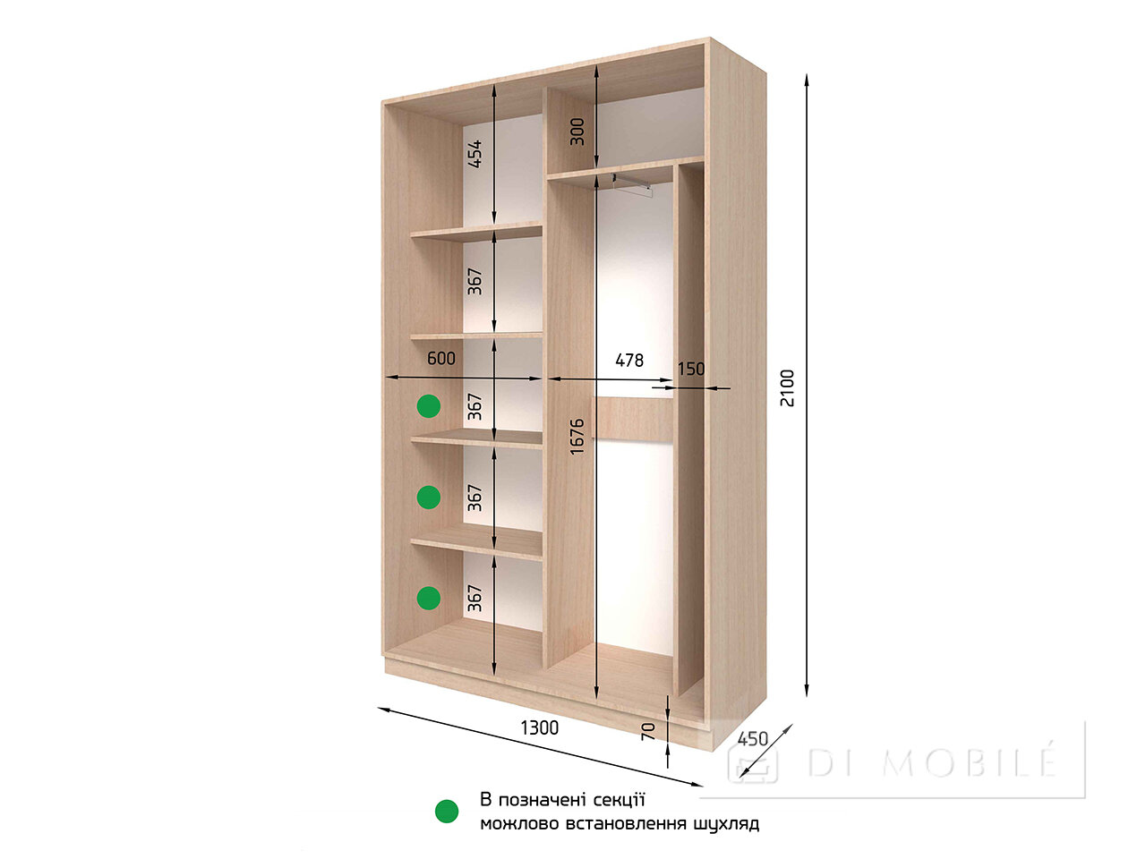 | Dimensiuni, mm | Lățime | Înălţimea | Adâncime |