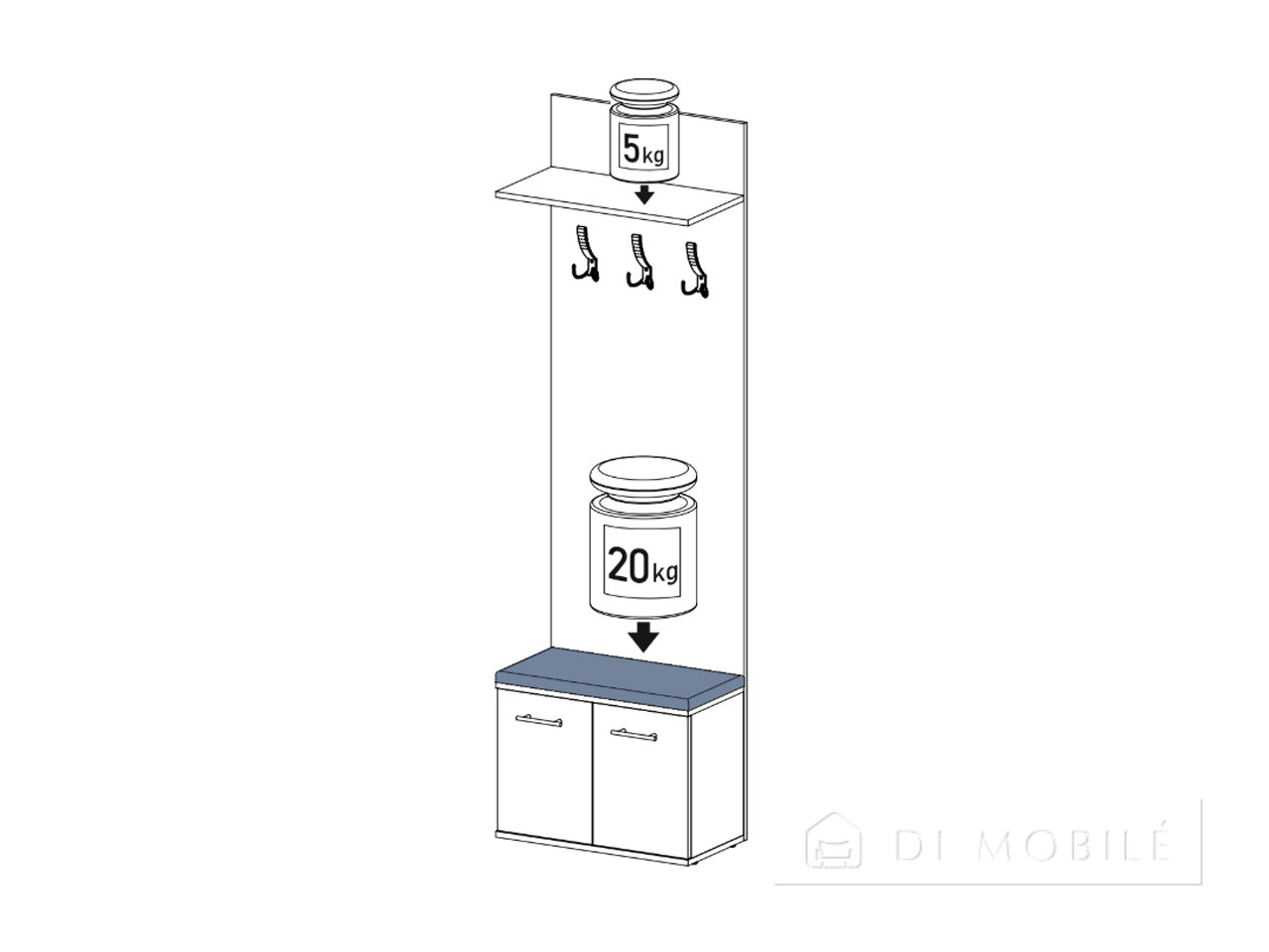 Valabilitate. Oglindă. Sertar retractabil Cârlige de îmbrăcăminte |