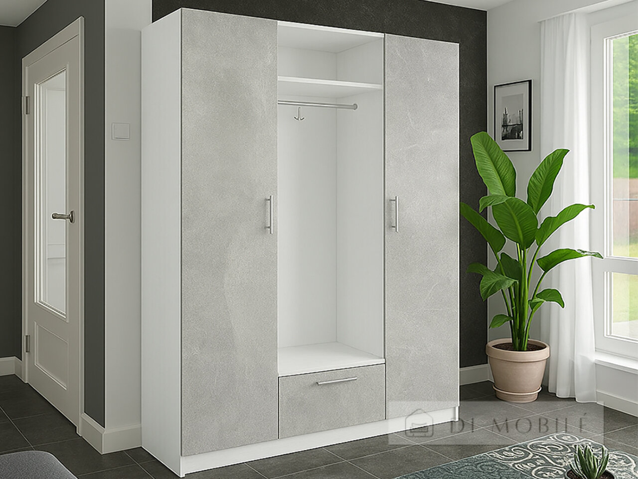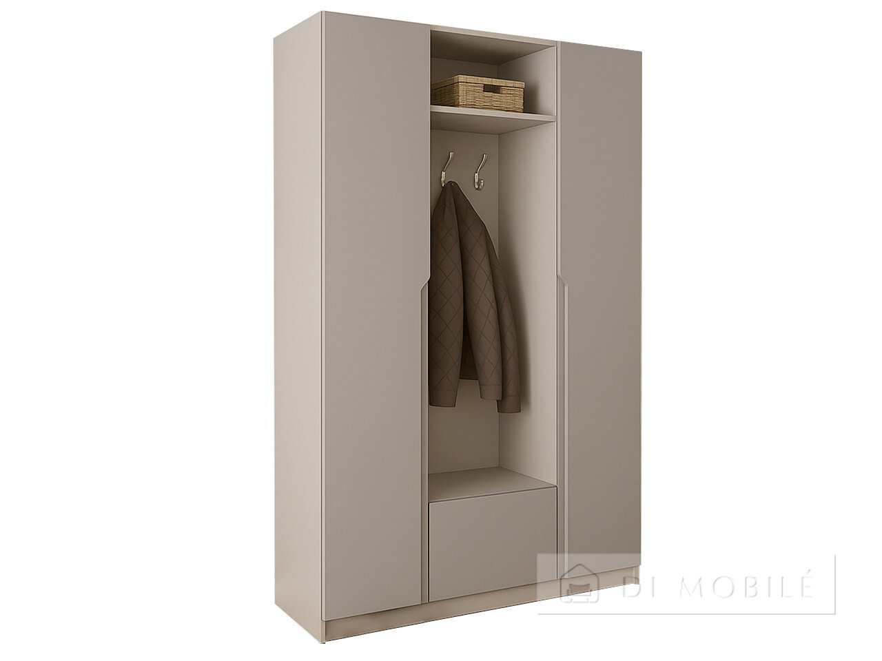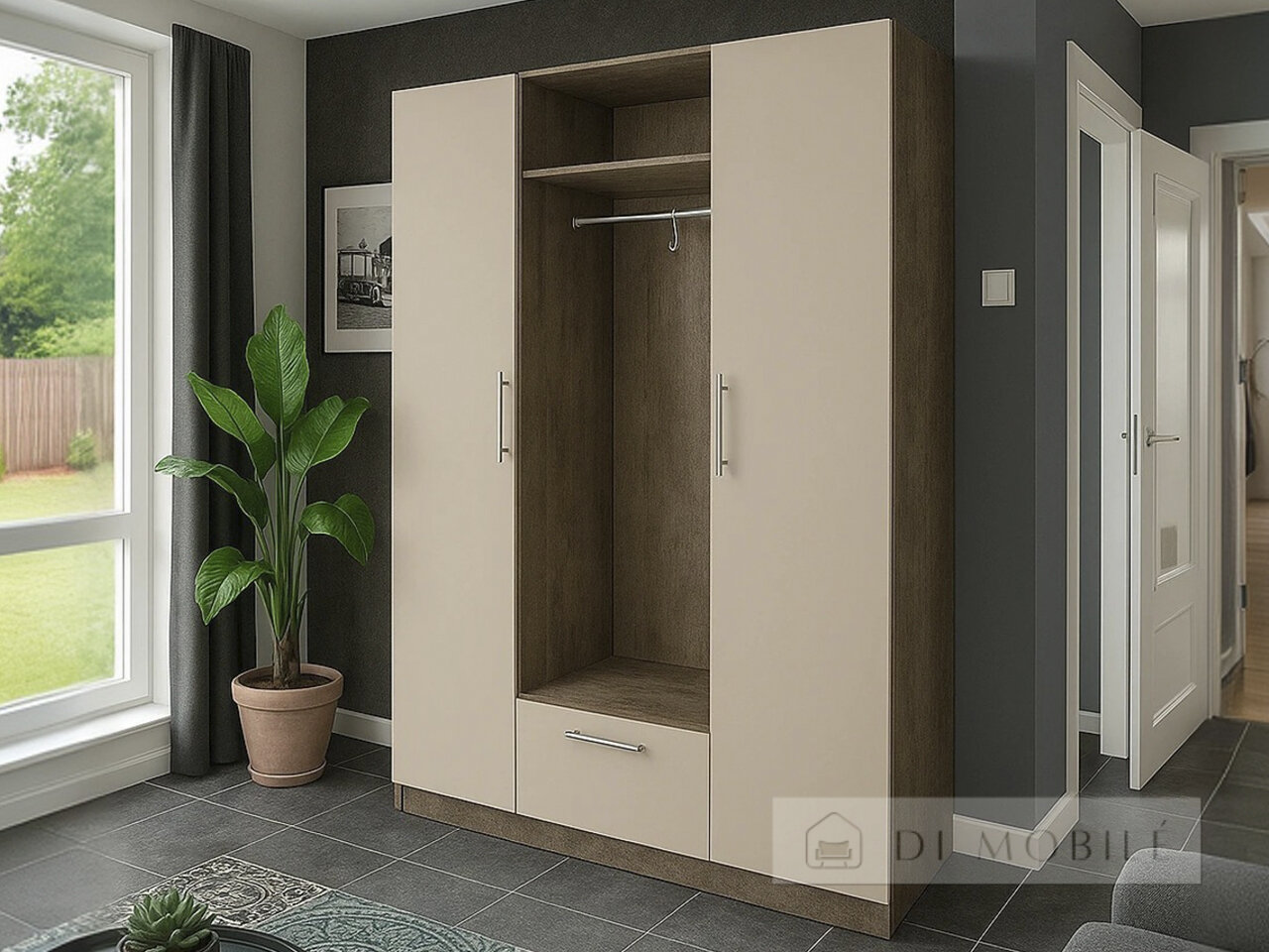 Dulapeste format din două secțiuni închise și o nișă cu un umeraș pentru îmbrăcăminte exterioară, are, de asemenea, o cabină de cameră. Ideal pentru orice dimensiune.