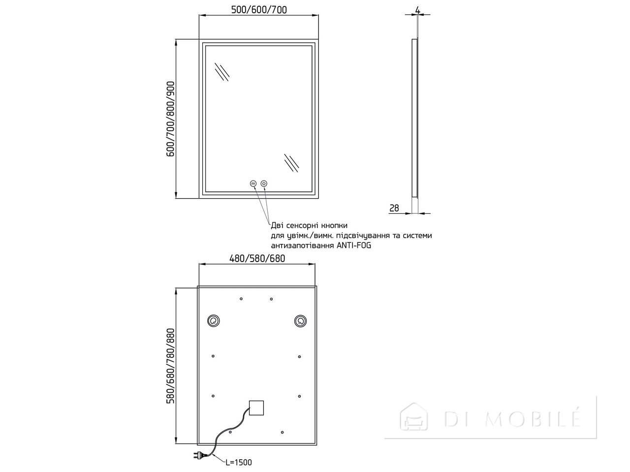 | Dimensiuni, mm | Lățime | Înălţimea. | Adâncime |