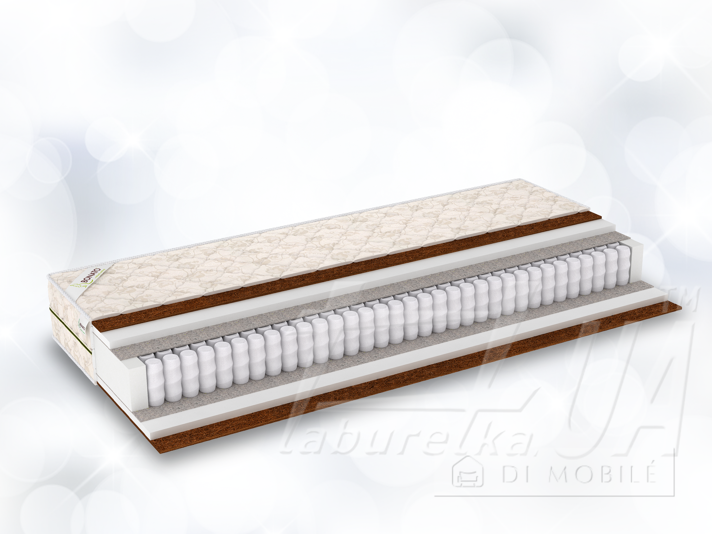 Include fibre hipoalergice de nucă de cocos, care au proprietăți bactericide mari, face salteaua mai rigidă. Primavara bloc - fabrica proprie de productie "Bonato."