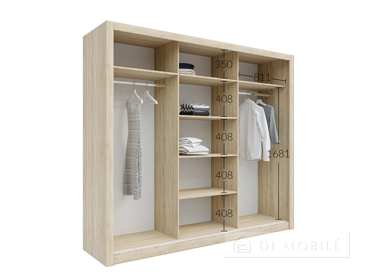 | Внутреннее наполнение: штанги для одежды, полки |