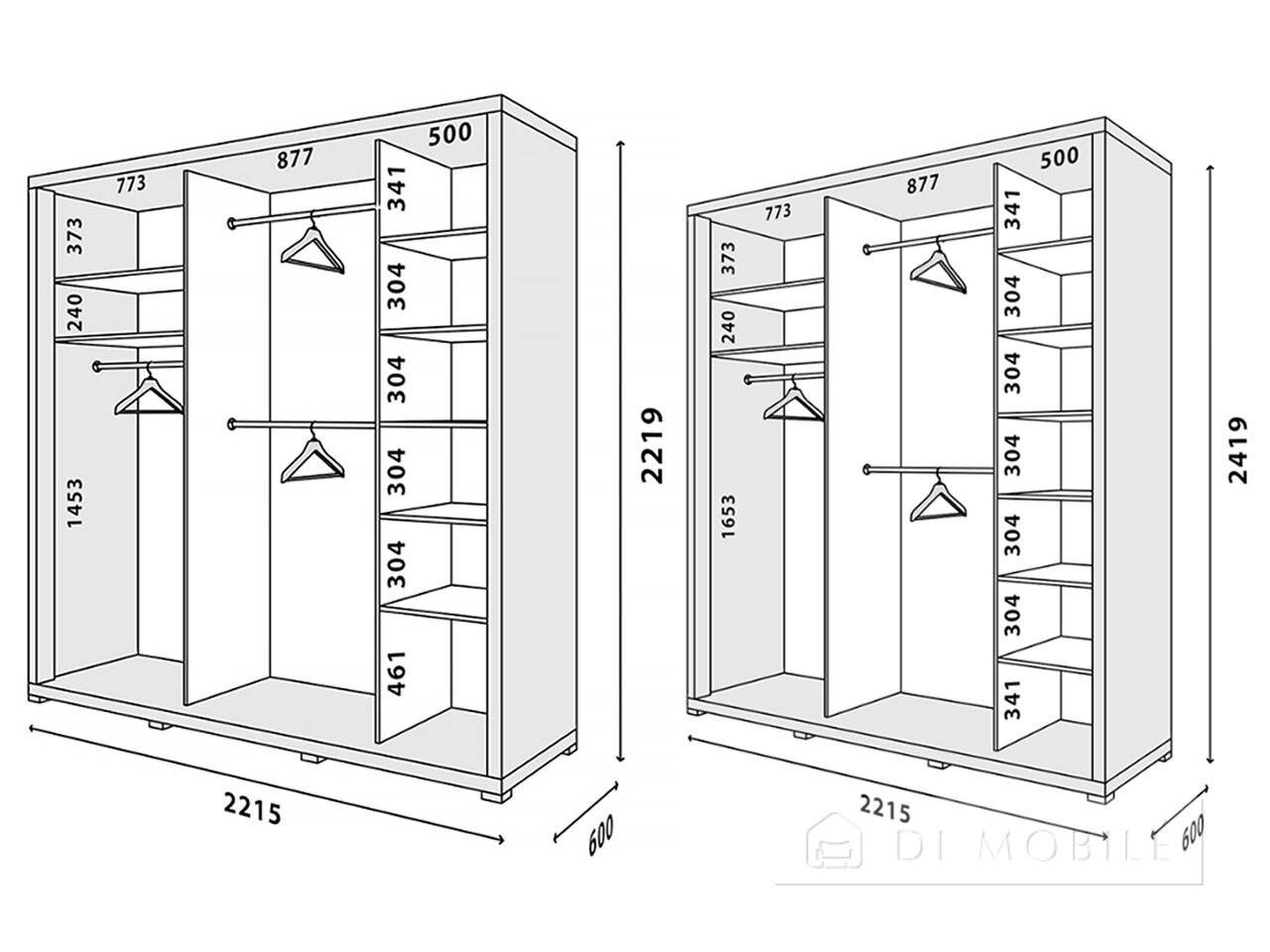 Размеры, мм Ш/В/Г: 2214/2400(2200)/604