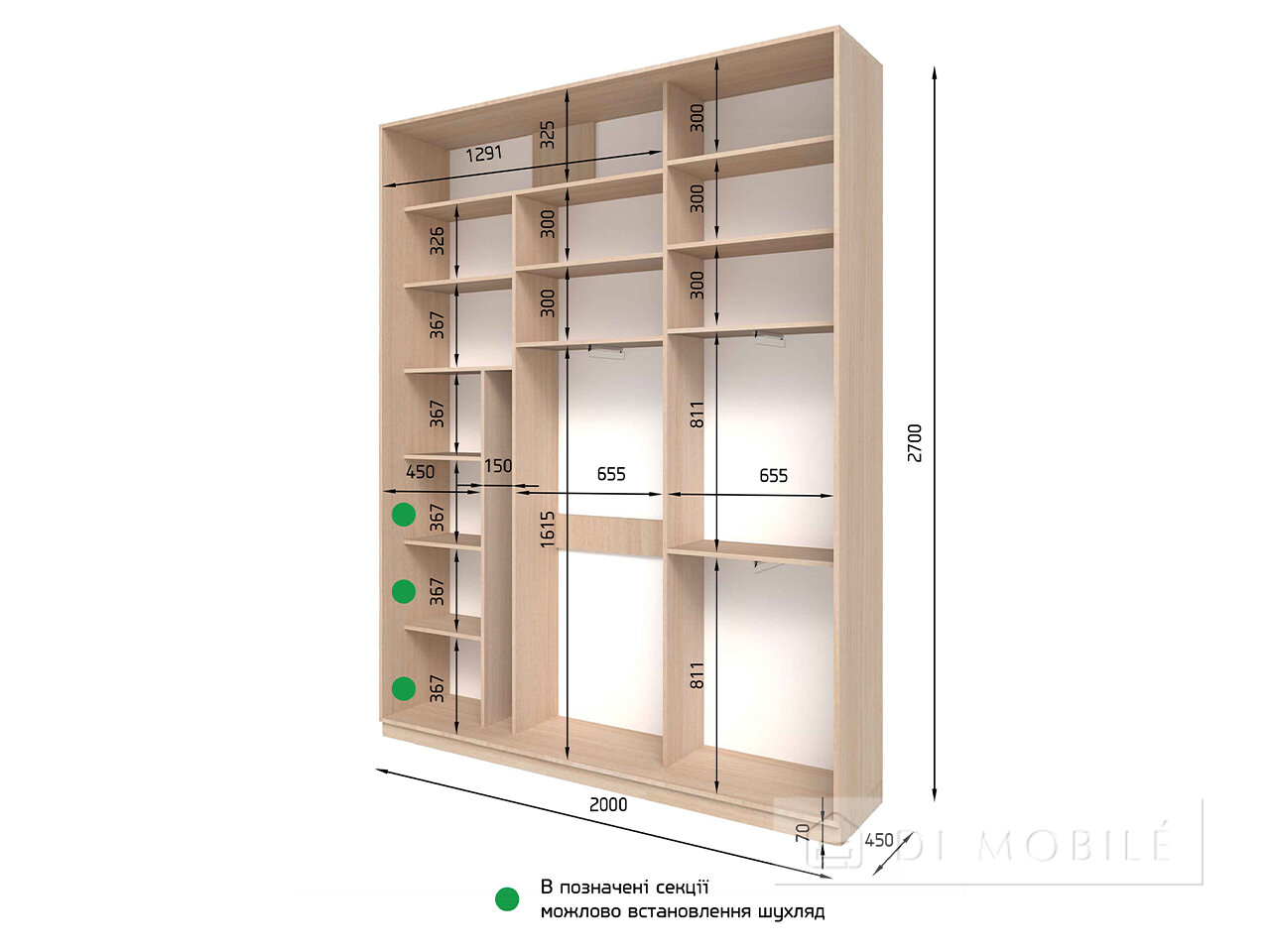 Цена указана за базовую комплектацию шкафа: алюминиевая раздвижная система, двери ДСП, глубина 600мм, без шухляд и углового сегмента. На фото изображен лишь один из возможных вариантов изготовления шкафа. Вы можете заказать шкаф нужной Вам комплектации: с зеркальными дверями, полноцветным рисунком, художественным матированием или их комбинациями. Подробности в описании.