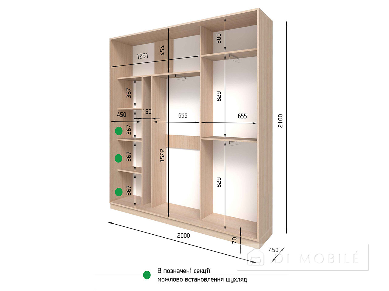| Габаритные | 2000 | 2100 (2400, 2700) | 450 (600) |