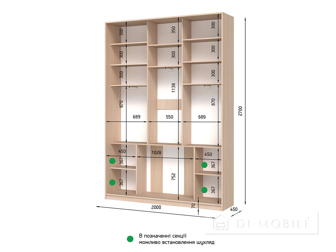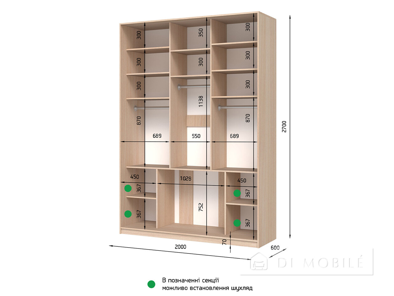 | Габаритные | 2000 | 2100 (2400, 2700) | 450 (600) |