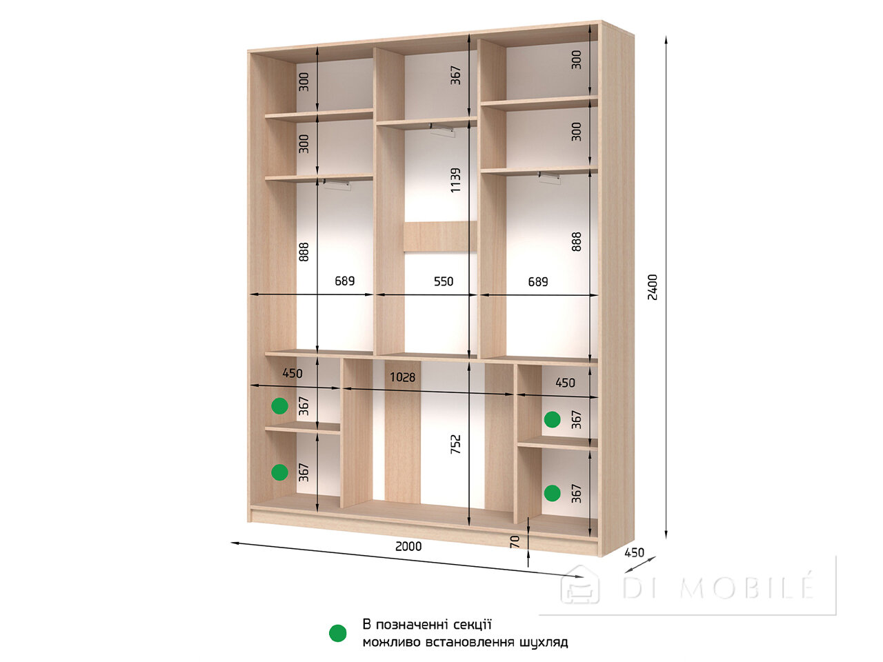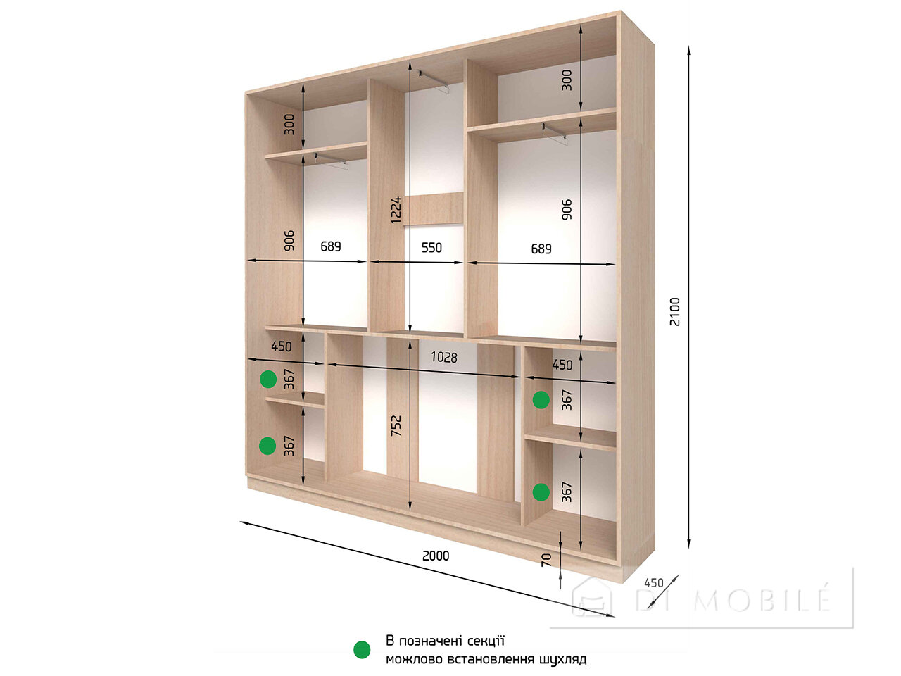 | Дополнительные ящики: направляющие — телескопические полного выдвижения; размер — Ш/В/Г 450/150/450(600) мм или 450/330/450(600) |