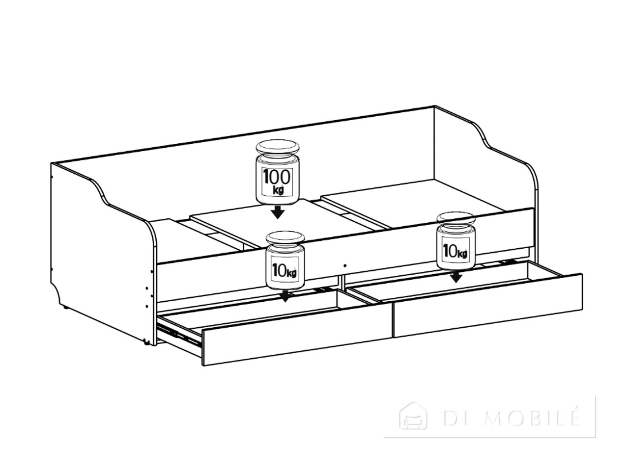 | В кровати присутствуют ящики на телескопических направляющих |
